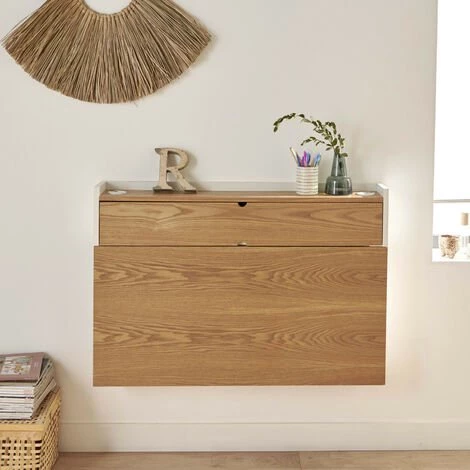Le bureau mural rabattable U-LINE vous permet une optimisation de votre espace et un gain de place non négligeable. Une fois déplié, ce bureau vous offre un bel espace de travail ainsi que des rangements. Avec son style scandinave, il convient à l’adulte, à l’adolescent ou à l’enfant. Ce bureau mural en bois se compose d’un caisson central et d’un plateau rabattable.