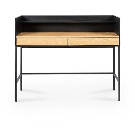 Compact, le bureau ALPHA trouvera facilement sa place dans un coin salon, une chambre d’enfant ou d’ado, ou même dans un couloir. De design simple, le bureau ALPHA vous séduira par le mariage agréable entre le bois couleur chêne et noir, posé sur les pieds en métal noir.