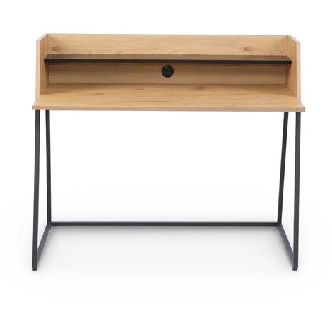 Meuble de caractère au design épuré, le bureau industriel et compact JASPER vous séduira par son style et par l’association du bois couleur chêne, contrasté par les pieds en métal aux formes géométriques. Il s’intégrera facilement dans tous les styles de décoration.