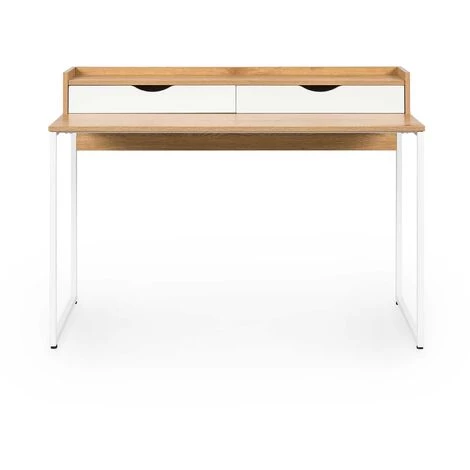Le bureau console en bois couleur chêne et blanc au design scandinave avec ses pieds en métal blanc KRISTOFER sera la solution idéale pour votre intérieur, car il est compact et fonctionnel. Plus besoin d’une pièce attitrée, le bureau scandinave KRISTOFER trouvera aisément sa place dans un coin salon, une chambre d’enfant, d’ado, ou même dans un couloir.