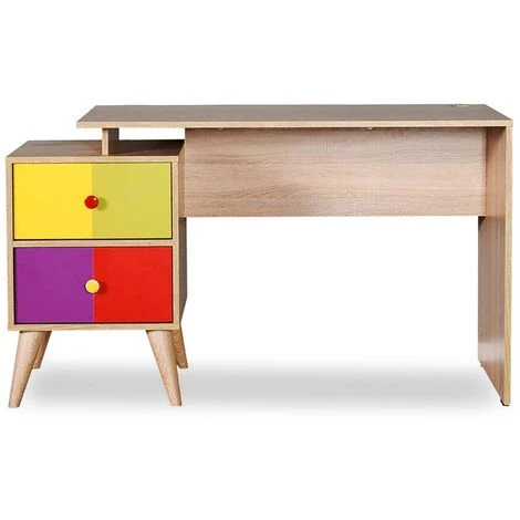 Minimaliste et tendance, le bureau couleur bois avec 2 tiroirs multicolores MABEL trouvera sa place aussi bien dans une pièce au style contemporain que dans un ameublement plus conventionnel. Doté d’un spacieux plateau et de 2 tiroirs de rangement, le bureau MABEL vous offrira fonctionnalité et ambiance de travail relaxante. Epuré et classique, il s’adaptera facilement à vos besoins. Idéale dans une chambre d’enfant, il vous offrira un spacieux espace de travail et des rangements pour organiser cahiers, dossiers, classeurs ou fournitures de votre enfant.