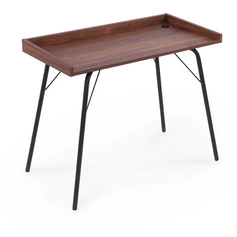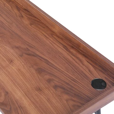 Bois MDF décor noyer, épaisseur 18 mm, pieds en métal noir. Passe-câble intégré.