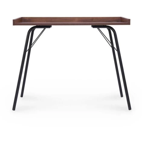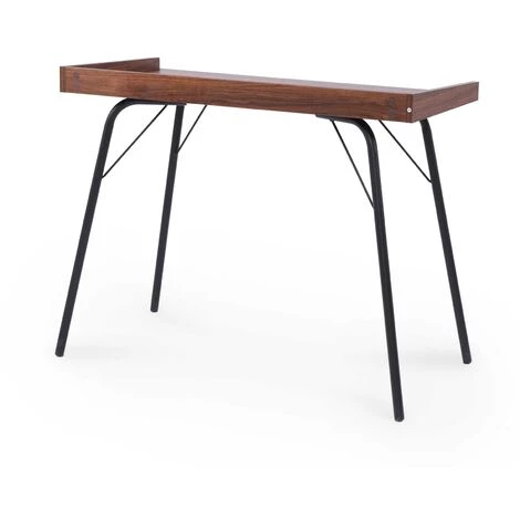 Composé d’un plateau couleur noyer en bois MDF et des pieds évasés fins en métal noir, le bureau pupitre RAILY vous séduira par ses finitions travaillées et ses formes légères.