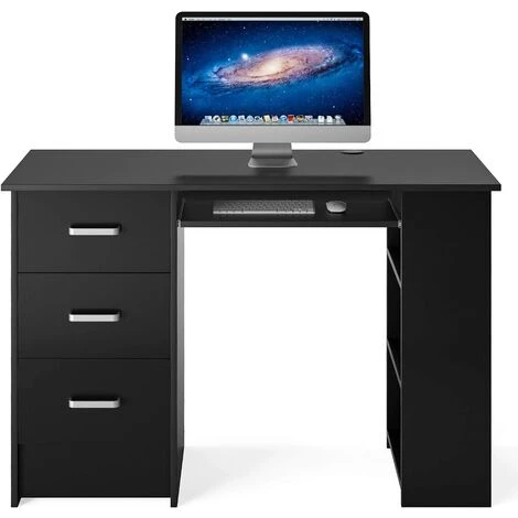 ★Dimension: Bureau d’ordinateur a un clavier (48 x 24 cm), trois tiroirs sur la gauche (40×20 cm), Dimension interieure des tiroirs (29x29x12cm), trois étagères sur la droite(40x24cm)