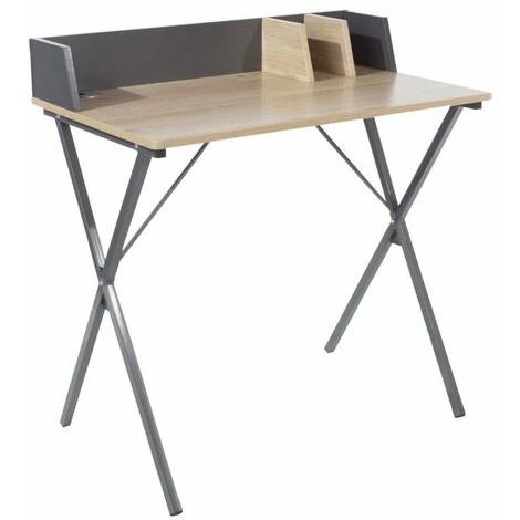 Ce bureau d’étude à domicile comprend un dessus d’effet de grain de bois en chêne léger avec un arrêt arrière gris et des jambes, ce bureau a des séparateurs de rangement le long du dos et un trou pré-coupe pour les fils.