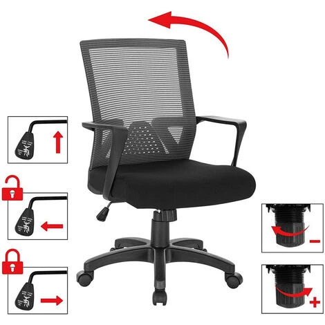 confortable: avec la fonction de rocker, vous pouvez vous pencher en arrière et vous détendre. De plus, la ligne du dossier de la chaise peut parfaitement correspondre à votre dos, vous pouvez vous asseoir dessus pendant une journée entière sans faire de maux de dos. Notre chaise de bureau est faite d’un tissu en maille respirant afin que l’air puisse circuler autour de votre dos et que vous ne transpirez pas.