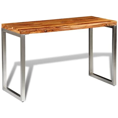 Cette table de salle à manger en bois est à la fois élégante et pratique. Elle peut être utilisée comme une table à dîner, mais aussi comme un bureau. Le design élégant fera de cette table de salle à manger un point attrayant dans n’importe quelle pièce. Cette table de dîner a un dessus de table vigoureux, sur lequel vous pouvez placer des articles décoratifs comme des paniers de fruits ou des vases. Cette table de salle à manger est faite de bois . Le bois est un bois dur tropical qui est bien connu pour ses grains riches et aussi connu sous le nom de palissandre ou de bois de rose. Elle est entièrement faite à la main et les beaux grains de bois rendent chaque pièce unique et légèrement différente l’une de l’autre. Les pieds en acier contribuent à la construction robuste. Remarque importante : les couleurs varient d’une pièce à l’autre, rendant chaque meuble unique ; La livraison est aléatoire.