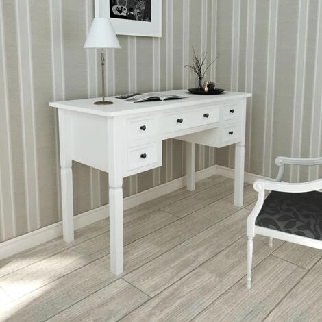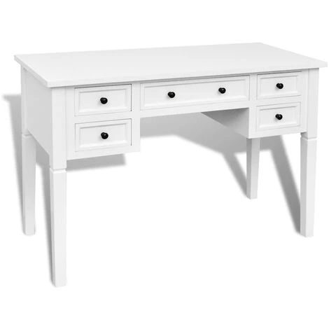 Ce bureau doté d’un design simple mais intemporel, ajoutera une touche romantique à votre bureau ou chambre. Ce bureau durable comporte cinq grands tiroirs à papeterie offrant assez d’espace pour stocker et organiser vos fichiers, papiers, documents et autres fournitures de bureau. Le bureau offre également suffisamment d’espace pour vos ornements ou autres effets personnels. Ce solide bureau peint en blanc est construit en MDF et en pin de haute qualité.