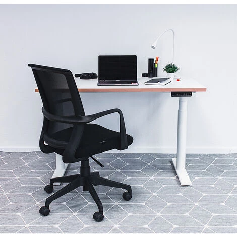 La hauteur de travail peut être modifiée à l’aide d’un boîtier de contrôle et une fois que vous avez trouvé votre hauteur parfaite pour travailler en position assise ou debout, il vous suffit de l’enregistrer dans l’un des trois buttons de mémorisation. Changer régulièrement de position vous permet de rester concentré, de stimuler la circulation du sang et est bon pour le dos. Notre bureau est certifié par le TÜV, très stable et peut supporter un poids allant jusqu’à 80 kg.
