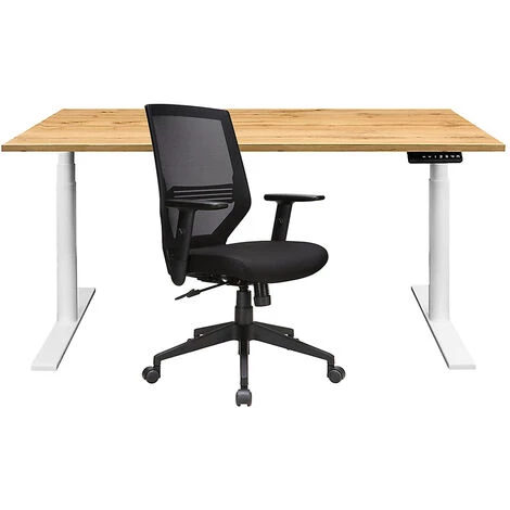 Largeur: 1600 mm, Réglage de la hauteur de la vitesse: 0.04 m/s, Hauteur maximale: 1275 mm, Hauteur minimale: 625 mm, Poids net: 68.2 kg, Épaisseur panneau: 25 mm, Hauteur maximale de l’assise: 510 mm, Hauteur minimale de l’assise: 440 mm, Profondeur: 800 mm, Tolérance dimensionnelle du plateau: 8 mm, Accoudoirs: Accoudoirs réglables en hauteur (70mm) en PU, Matériau du piétement: Acier peint époxy, Réglage de la hauteur: Ressort à gaz, Inclus dans la livraison: 1 Josi, 1 Lokai, Norme: DIN EN 1335, Coloris plateau: Chêne, Modèle de roulettes: Roulettes pour sols souples, Matériau roulettes: Nylon, Matériau dossier: Maille (polyester), Matériau des housses de siège: Tissu (polyester), Matériau plateau de table: Panneau aggloméré mélaminé