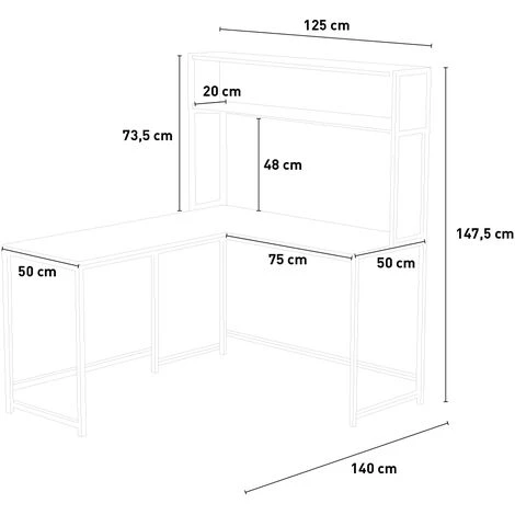 Avec sa combinaison audacieuse de bois et de métal avec un accent industriel et en phase avec les tendances actuelles de l’ameublement, ce bureau produit par Office24 offre la possibilité de créer une pièce particulièrement originale et fonctionnelle, la positionnant comme pratique grâce à sa forme angulaire qui lui permet de s’adapter à tout type d’utilisation. Le plateau latéral peut en effet être monté aussi bien à droite qu’à gauche de l’étagère principale afin de choisir la configuration qui convient le mieux aux besoins et à l’espace disponible et grâce à sa ligne de base, vous pouvez le faire très confortablement. Mais ce qui identifie la qualité du bureau d’angle Hoover, ce ne sont pas seulement les formes minimales mais aussi les matériaux de construction, soigneusement choisis pour favoriser son utilisation et sa durabilité dans le temps : la structure de support est solide et robuste comme le métal qui donne forme au design ; la surface est en MDF résistant avec une finition mélaminée anti-rayures avec un effet bois vieilli particulier qui met en valeur le style industriel ; le plan de travail est au contraire fonctionnel pour répartir au mieux tout le nécessaire pour l’étude et le travail grâce à sa largeur, ainsi que le module superposé qui grâce aux 2 compartiments ouverts vous permet d’avoir plus d’espace disponible sur lequel ranger documents, livres, objets d’ameublement ou tout ce qui est utile pour le bureau à domicile d’une manière toujours correcte et ordonnée.
