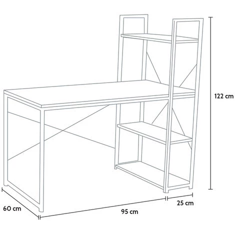 - Dimensions : 120 (95 + 25) x 60 x 122 cm (largeur, profondeur, hauteur)