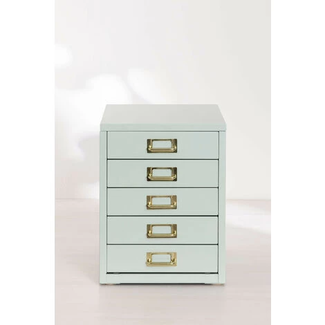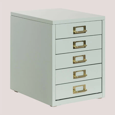 Le organisateur Kazuo est le complément parfait pour vous aider à garder votre espace de travail propre et bien rangé. Il présente un design moderne et fonctionnel, avec cinq tiroirs pour que vous puissiez organiser votre quotidien au bureau. Sa fabrication en acier, dans un style industriel, nous donne cette touche que nous aimons tant, donnant ainsi à la pièce une touche moderne et originale. Grâce à sa conception, cet organisateur est idéal pour une utilisation au bureau et à la maison.Pour le nettoyage, nous vous recommandons d’utiliser un chiffon humide et d’éviter l’utilisation de produits chimiques. Dimensions (Hauteur x Largeur x Profondeur): 35,5 cm x 28 cm x 35 cm IMPORTANT : Le service standard porte-à-porte ne comprend pas la livraison et la collecte des marchandises au domicile du client, qui sont à la charge de ce dernier. Il est possible que le livreur aide volontairement à la livraison de la marchandise (ceci est totalement volontaire pour le livreur et la société de transport et ne relève pas de la responsabilité de Sklum).L’assemblage n’est pas non plus inclus.
