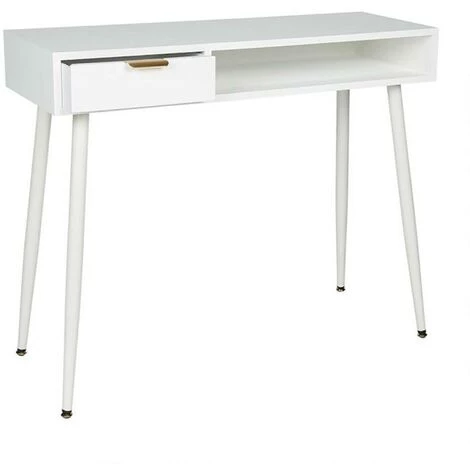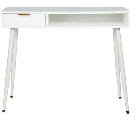 Découvrez ce beau bureau contemporain en bois couleur blanc. Ce bureau minimaliste possède un tiroir et une niche.