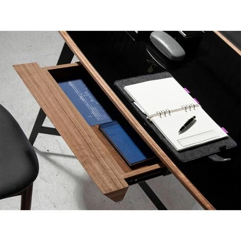 - Structure : Bois contreplaqué Noyer & Verre teinté noir