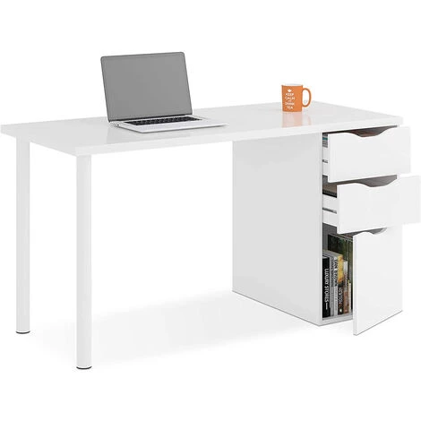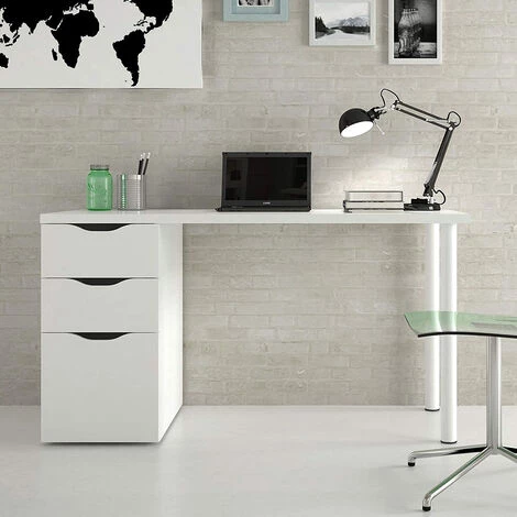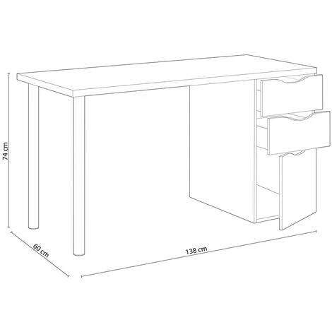 Bureau reversible avec 2 tiroirs (les tiroirs peuvent être montés à droite ou à gauche) et une porte coloris Blanc Artic. Bureau informatique design contemporain idéal pour ajouter une touche de modernité et d’élégance dans votre chambre ou bureau! Dimensions : 138 cm (longueur) x 60 cm (profondeur) x 74 cm (hauteur) . Coloris : Blanc Artic. Poids : 35.45 kg ; dimension du tiroir : 32 cm (largeur) x 10 cm (hauteur) x 40 cm (profondeur). Produit certifié PEFC (association espagnole pour la durabilité des forêts)
