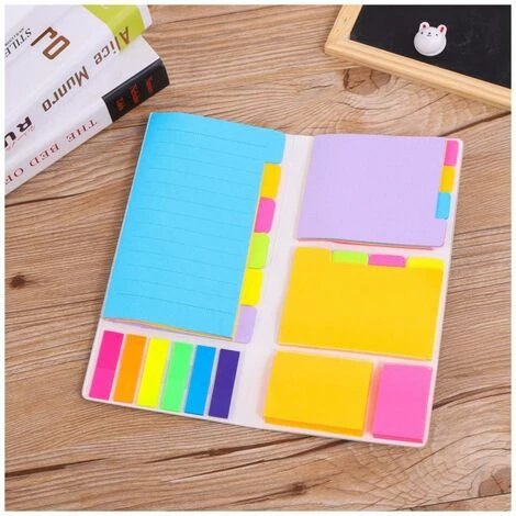 【6 tailles et plusieurs couleurs】 L’ensemble de notes autocollantes comprend différents styles de séparateurs plats. Lignes, espaces, points et étiquettes de signet d’index de différentes couleurs. 402 feuilles pour répondre à vos différents besoins