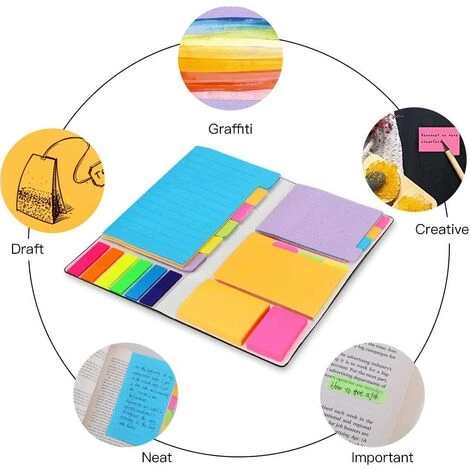 【Conception portable】 L’ensemble de notes autocollantes est livré avec une pochette en cuir noir, ce qui est un excellent moyen de garder toutes sortes de notes organisées. Il est soigné, compact et mince. Idéal à transporter ou à mettre dans votre poche. Gardez-le sur votre bureau ou dans un tiroir pour un accès facile