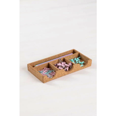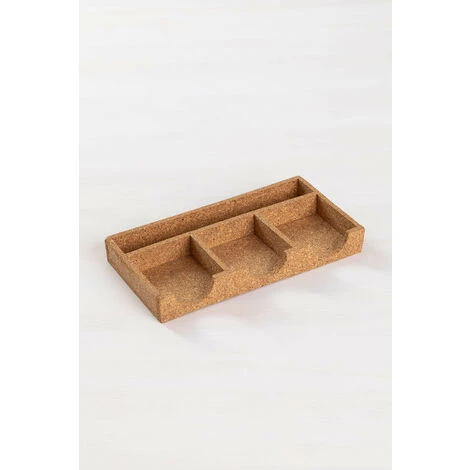 Le plateau organisateur de bureau Skriv est le complément parfait, pour le bureau ou le tiroir, il vous aidera à garder votre espace de travail propre et bien rangé. Il présente un design moderne et fonctionnel, avec quatre grands compartiments pour organiser votre matériel de travail. Son style naturel est dû à sa construction en liège légère et résistante. Organisation et style vont de pair avec Skriv !Pour un bon entretien, nous vous recommandons de nettoyer à sec la zone tachée, car le liège n’est pas un matériau imperméable et peut se détériorer lorsqu’il est mouillé. Dimensions (Hauteur x Largeur x Profondeur): 2,7 cm x 21,2 cm x 11,4 cm IMPORTANT : Le service standard porte-à-porte ne comprend pas la livraison et la collecte des marchandises au domicile du client, qui sont à la charge de ce dernier. Il est possible que le livreur aide volontairement à la livraison de la marchandise (ceci est totalement volontaire pour le livreur et la société de transport et ne relève pas de la responsabilité de Sklum).L’assemblage n’est pas non plus inclus.