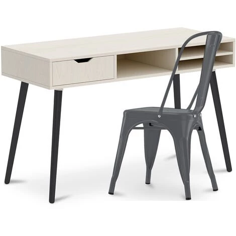 Créez le parfait espace de travail à la maison avec notre pack composé d’un bureau en bois et d’une chaise en métal. La chaise, au design industriel, est entièrement en métal et sa robustesse à toute épreuve supporte tout type de poids. Le bureau quant à lui, emprunte au design scandinave et est entièrement en bois de qualité avec des finitions soignées. Ses nombreux rangements, situés en dessous, vous permettent d’avoir un accès rapide à tout ce dont vous avez besoin pour travailler tout en vous laissant un maximum de place sur la surface de travail. Dimensions : cm x cm x cm (L x l x H)