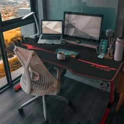 Devoko Bureau Gaiming 140 Cm Bureau Gamer Informatique Table Avec Porte-Boisson Et Porte-Casque Noir