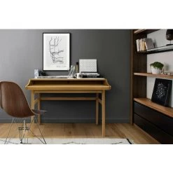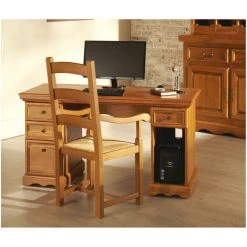 HELLIN Bureau Informatique En Chêne Massif Avec Tirette Pour Clavier – LA BRESSE – Bois Foncé