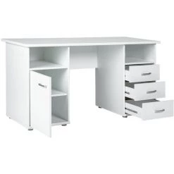 Bureau 1 Porte + 3 Tiroirs Coloris Blanc – Longueur 148 X Largeur 60 X Hauteur 75 Cm -PEGANE-