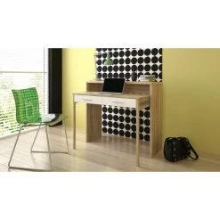 SKRAUT HOME Bureau Extensible, Table Pour Ordinateur, 2 Tiroirs, Blanc+chene Clair Brosse. – CHENE