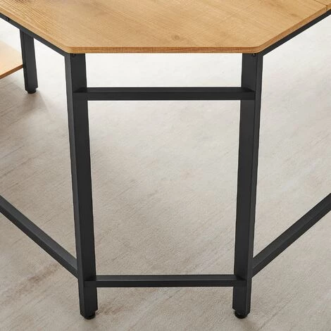 Un style authentique : Avec un mélange de métal rigide et de panneau chêne clair, ce bureau d’angle apporte une note d’originalité et de charme à votre intérieur. Vous pouvez y travailler avec la certitude que vous faites le bon choix pour votre maisonBureau sur mesure : Les deux côtés de ce bureau sont de la même longueur pour pouvoir l’installer partout dans tous les sens possibles. Au milieu du bureau une coupure est présente pour faire passer les câbles des appareilsTout À portée de main : Gardez tout à portée de main. Ce bureau d’angle est muni de 2 étagères pour garder vos dossiers et livres à portée de main. La tablette supérieure peut être enlevée pour faire de la place pour une unité centrale. Dimension: 138x50x75cm. Coloris : chêne clair.L’assemblage est un jeu d’enfant : Pour simplifier la tâche, des instructions illustrées, des pièces numérotées et tous les outils nécessaires sont fournisIdée déco : Donnez vie à vos idées déco avec ce bureau de style industriel, transformez votre chez-vous en une maison de rêve dès maintenant ! Cette table fait partie de la Collection HENRY.