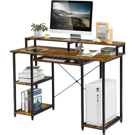 - ★GRAND ESPACE DE RANGEMENT★ Cette table d’ordinateur possède 1 bureau spacieux, 1 plateau de clavier coulissant, 1 stand des hôtes informatiques et étagères ouvertes à 2 niveaux, ce qui offrent suffisamment d’espace de stockage pour accueillir votre ordinateur, clavier, accessoires de bureau.