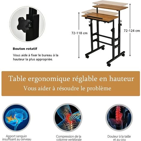 2 roulettes avec frein vous permettent de l’immobiliser n’importe oùComme bureau d’ordinateur, table d’étude pour écrire ou table de jeu
