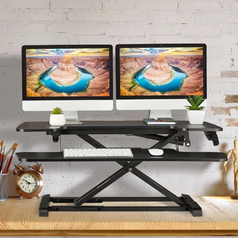 Il vous permettra non seulement dechanger de position lorsque vous travaillez, mais aussi de prévenir lesdouleurs dorsales et cervicales. La hauteur du rehausseur de bureau peut êtreajustée comme vous le souhaitez grâce à un levier avec un ressort pneumatiquede haute qualité. Ce standing desk offre de la place pour 2 moniteurs etdispose d’une tablette pour clavier amovible et spacieuse.