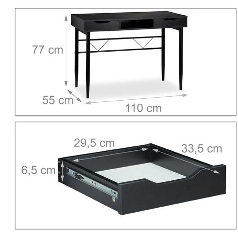 Le gros pupitre a suffisamment de place pour l’écran de votre ordinateur et autres choses que vous utilisez au bureau ou pour le travail à la maison. Deux tiroirs et l’espace du milieu vous donnent de l’espace pour vos petites affaires et documents, de sorte que vous puissiez vous concentrer sur votre travail de création. Le bureau stylisé convainc en outre avec ses lignes droites et ses pieds métalliques stables. Socle solide pour un travail productif.