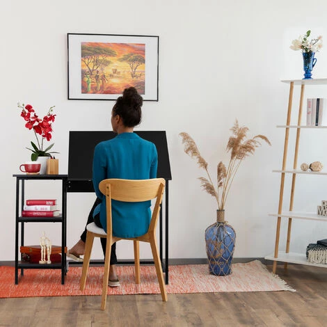 Le travail est pour vous plus facile sur ce bureau Avec une surface supérieure inclinable par niveaux vous pouvez travailler dans la position qui vous offre la meilleure tenue et une meilleure vue sur le pupitre. Pour dessiner, pour des travaux à l’ordinateur ou d’écriture, la table pliable répond à vos besoins.