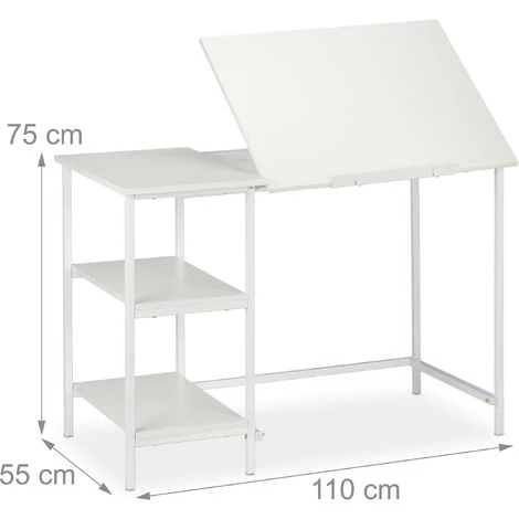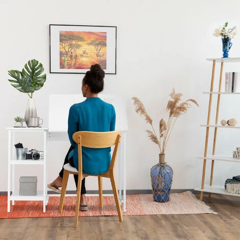 Le travail est pour vous plus facile sur ce bureau Avec une surface supérieure inclinable par niveaux vous pouvez travailler dans la position qui vous offre la meilleure tenue et une meilleure vue sur le pupitre. Pour dessiner, pour des travaux à l’ordinateur ou d’écriture, la table pliable répond à vos besoins.