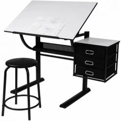 Trois étagères sur le côté droit du pupitre vous aident dans l’organisation des documents, des instruments de travail et du matériel de bureau. Grâce à ses dimensions peu encombrantes et sa fonction intégrée, le bureau convient pour le travail de la maison ou au bureau. Vous avez plusieurs combinaisons de la table de dessin à votre disposition.