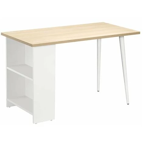 Un bureau idéal pour le télétravail. Pratique, ce modèle se compose d’un bureau droit, de 2 pieds style scandinave et d’une bibliothèque intégrée.