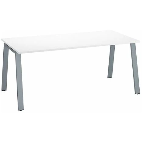 Piétement acier époxy anti-rayures en arche inclinée et poutre de renfort sous toute la longueur.