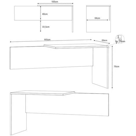 - Surface d’appui gauche supplémentaire compatible avec le bureau Simply de la ligne Doublé de Sarmog