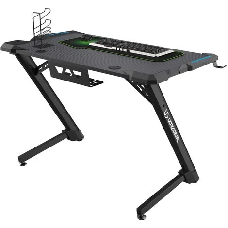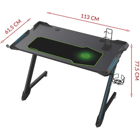 Le bureau gamer Corli attirera le regard de chaque visiteur. La construction stable en forme de lettre Z fournira le propre niveau de confort et les diodes LED garantiront le climat inoubliable. Le support pour les écouteurs, pour les pads, le tapis de souris et pour boissons. Le tapis de clavier spacieux vous permettra de contrôler vos mouvements.