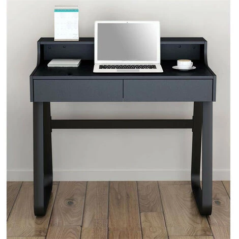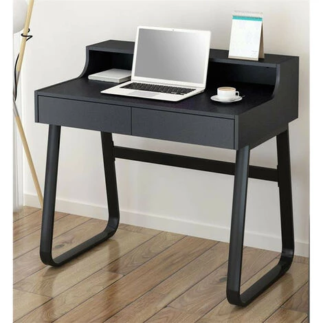 Ce petit bureau noir aux lignes épurées vous est proposé par notre site MyCocooning. Ce bureau de bonne qualité conviendra parfaitement à l’organisation de petits espaces. Ses deux tiroirs en font un bureau très pratique pour ranger aussi bien votre matériel informatique que vos papiers.