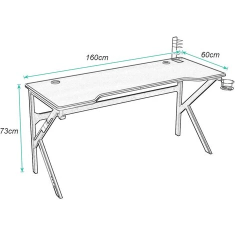 Bureau de Jeu GRANDE SURFACE DE JEU – Taille: L160 * W60 * H73 CM. Capacité de poids: 150KG. Avec un grand tapis de souris couvrant tout le bureau, ce bureau de jeu offre un grand espace pour placer un moniteur, un clavier, une souris librement en mouvement ou tout autre appareil de jeu.