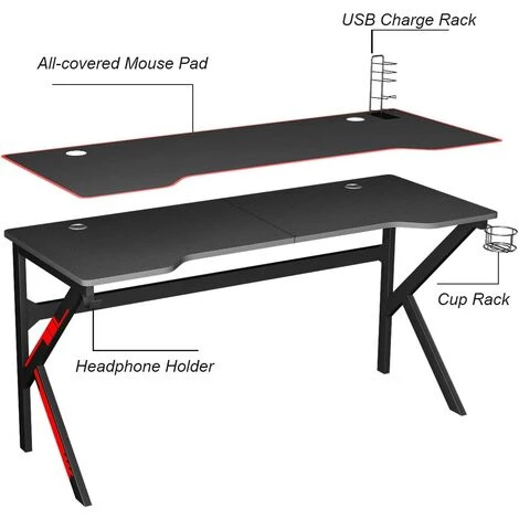 Bureau de Jeu Durable & Stable– Construit en panneaux de fibres à haute densité avec surface en PVC et cadre en acier revêtu offrant une grande durabilité. Conception en forme de K et quatre pieds de nivellement pour que le bureau reste horizontal.