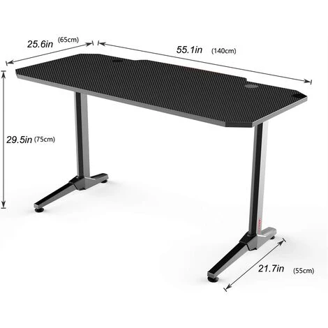 Bureau de Jeu GRANDE SURFACE DE JEU– Taille: L140 * W65 * H75 CM. Capacité de poids: 150KG. Avec un grand tapis de souris couvrant tout le bureau, ce bureau de jeu offre un grand espace pour placer un moniteur, un clavier, une souris librement en mouvement ou tout autre appareil de jeu.