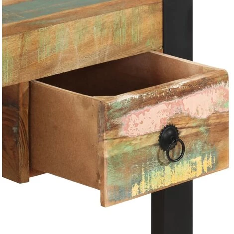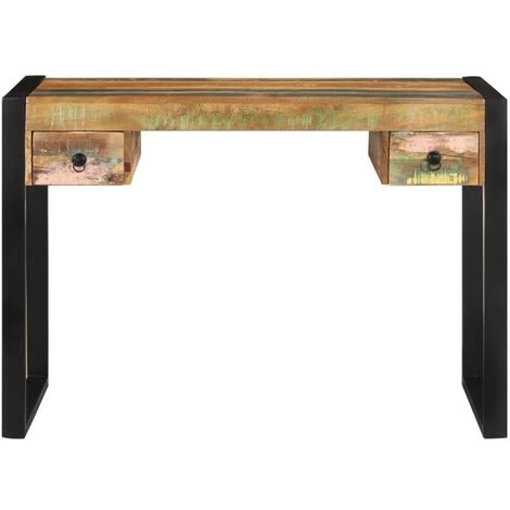 Ce bureau en bois de style vintage, fait en bois de rĂ©cupĂ©ration massif, sera un supplĂ©ment indĂ©modable Ă votre maison. Grâce Ă sa structure robuste, le bureau est très stable et durable. Le dessus offre une surface stable et robuste pour que vous puissiez y poser vos verres, un panier de fruits, un vase ou d’autres objets dĂ©coratifs. Il est dotĂ© de deux tiroirs qui vous offrent assez d’espace pour y ranger des petits objets comme des clĂ©s, des carnets et d’autres babioles. Ce bureau peut ĂŞtre utilisĂ© comme bureau d’ordinateur, table de travail, table pour lire ou Ă©tudier, etc. Il peut Ă©galement ĂŞtre utilisĂ© comme buffet ou comme table console. Le bureau est fait en bois de rĂ©cupĂ©ration, ce qui signifie que chaque meuble est unique et lĂ©gèrement diffĂ©rent l’un de l’autre. Les meubles faits en bois de rĂ©cupĂ©ration possèdent les caractĂ©ristiques de bois diffĂ©rents comme le bois de teck, d’acacia, de manguier, de saal, etc. Le bois de rĂ©cupĂ©ration est solide, stable, durable et magnifique. Les signes d’usure et la structure de fibres visible donnent Ă chaque meuble une apparence unique et leur propre histoire. Ce bureau est entièrement fait Ă la main et la qualitĂ© de l’artisanat s’ajoute Ă son style rĂ©tro spectaculaire. Chaque Ă©tape du processus est effectuĂ©e avec le plus grand soin, qu’il s’agisse de la recombinaison, le polissage, la peinture ou le cirage. Remarque importante : Les couleurs varient d’un meuble Ă l’autre, rendant chacun de nos bureaux unique, la livraison est alĂ©atoire.