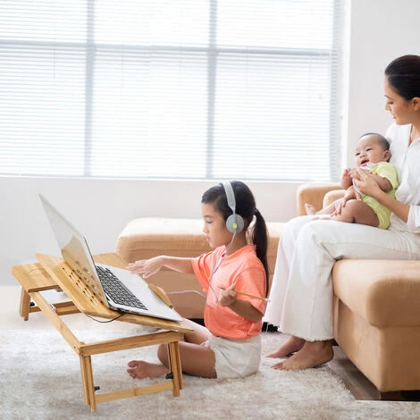 Bureau multifonctionnel pour ordinateur portable en bambou, écologique et durable, robuste et résistant à l’usure, forte capacité de charge. Polie et peinte, la surface est lisse.