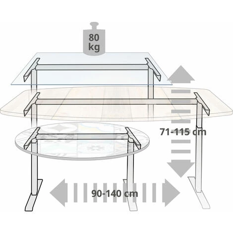 – Pied de table réglable en hauteur électriquement pour bureau – dimensions totales : env. 100-140 x 71-115 cm (l x h)