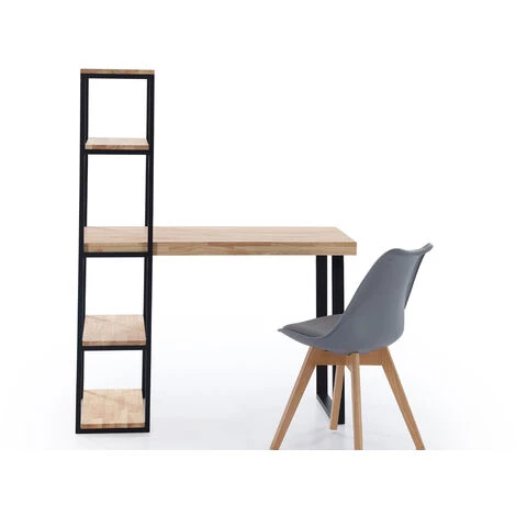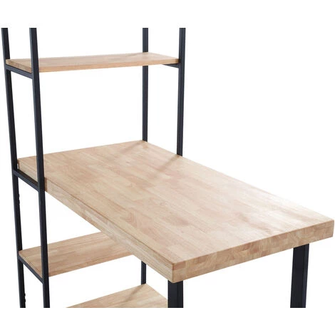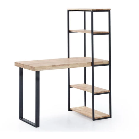Table de bureau avec étagère, son plateau en bois d’épaisseur 54 mm coloris chêne nordique. Structure métallique noire.Dimensions : Longueur 115 x profondeur 63 x hauteur 78 – 147 cm Matière : bois, métalColoris : chêne nordique / noirPoids : 28 kg