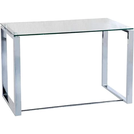 Table de bureau rectangulaire avec longueur 120 cm en verre trempé translucide. Les pieds en métal peint coloris blanc. Facile à nettoyer. Dimensions: Longueur 120 x largeur 60 cm. Coloris : blanc. Matière : verre, métal. Poids : 31 KG.