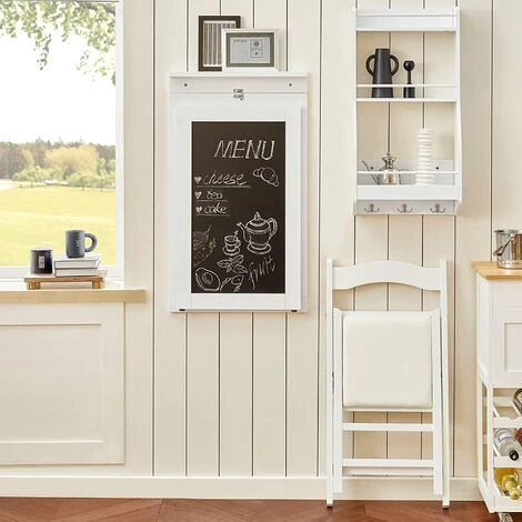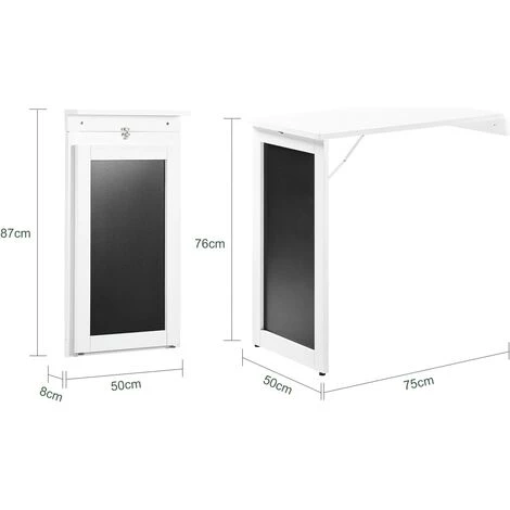 Table de cuisine / repas, bureau pliant avec Memo Board de bon rapport qualité-prix.– Matériel: Bois MDF avec finition laquée blanche. – Dimension de table dépliée : L50cmxH76cmxP75cm. – Dimension de table pliée : L50cmxH87cmxP8cm. – Charge maximale : 80 kg. – À monter soi-même facilement. |
